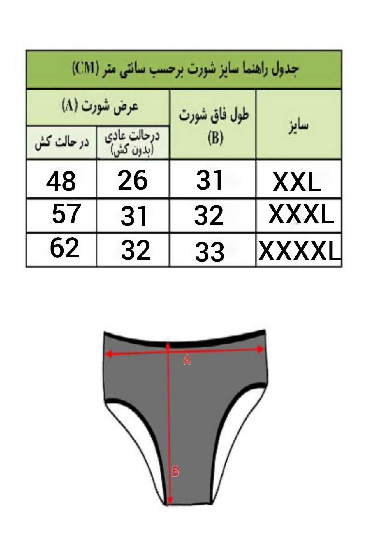 راهنمای سایز داخل عکس ها موجود است.